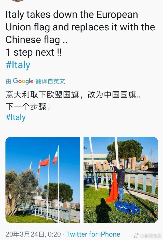 Σε πολλούς δήμους πλέον της Ιταλίας οι πολίτες κατεβάζουν τις σημαίες της ΕΕ και ανεβάζουν στη θέση τους σημαίες της Ρωσίας και της Κίνας σε μια εμφανώς αντιευρωπαϊκή κίνηση που όλο διευρύνεται και δεν παρεμποδίζεται από την κυβέρνηση της Ιταλίας που και αυτή όπως φαίνεται “νίπτει τας χείρας της” για την ΕΕ , ενώ η Ιταλία προσπαθεί να σταθεροποιηθεί και να “επουλώσει” τις πληγές της .
