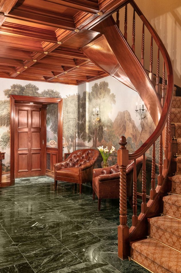 Το σπίτι διαθέτει τέσσερις κρεβατοκάμαρες, πέντε μπάνια, γυμναστήριο, τεράστια κουζίνα, έξι παλιά μαρμάρινα τζάκια και roof garden με υπέροχη θέα.